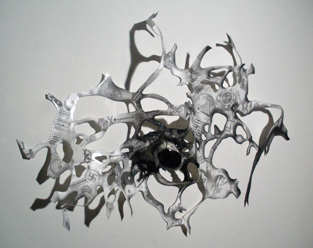 This is a detail shot from The Persian Butterfly, a one-of-a-kind neck piece. I love the quality of the metal where it has been worn down and the warm tones created by the patina over the existing pattern. Again, this is inspired by all the worn out, repainted, run over, man-handled pieces of metal out there.